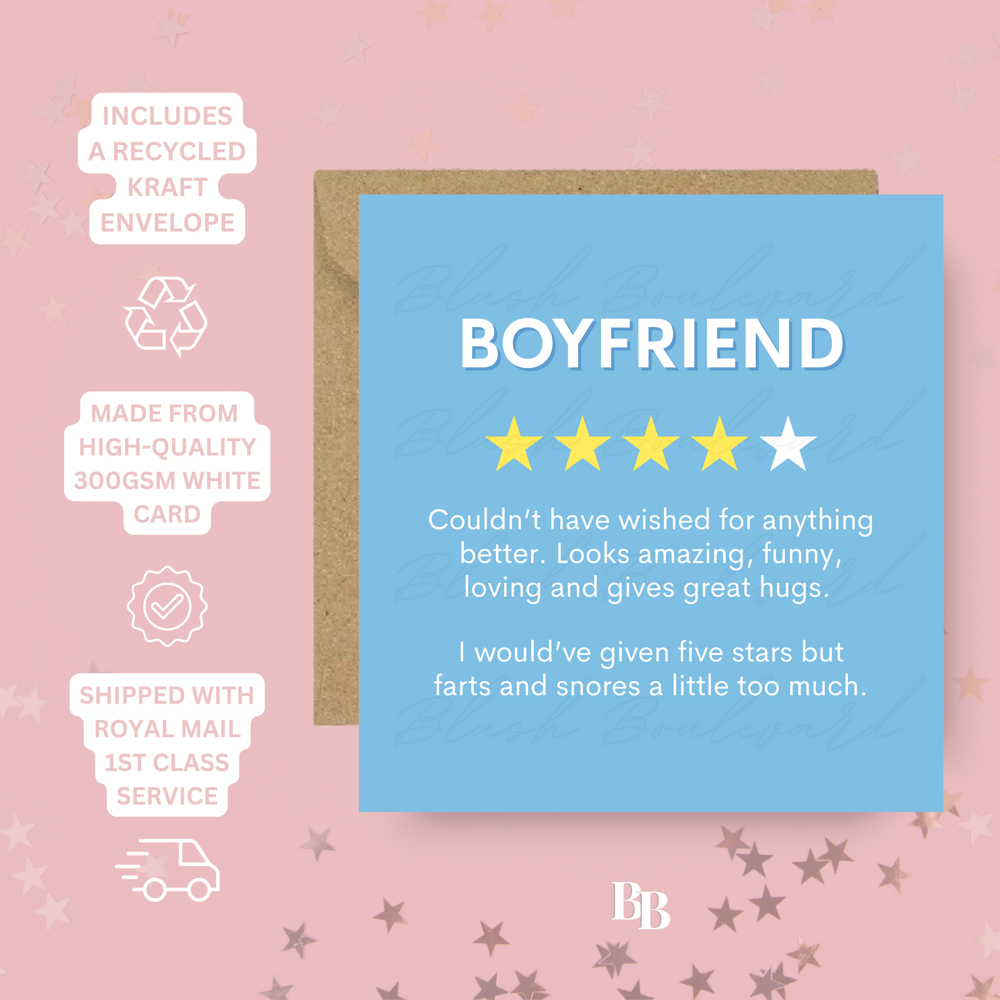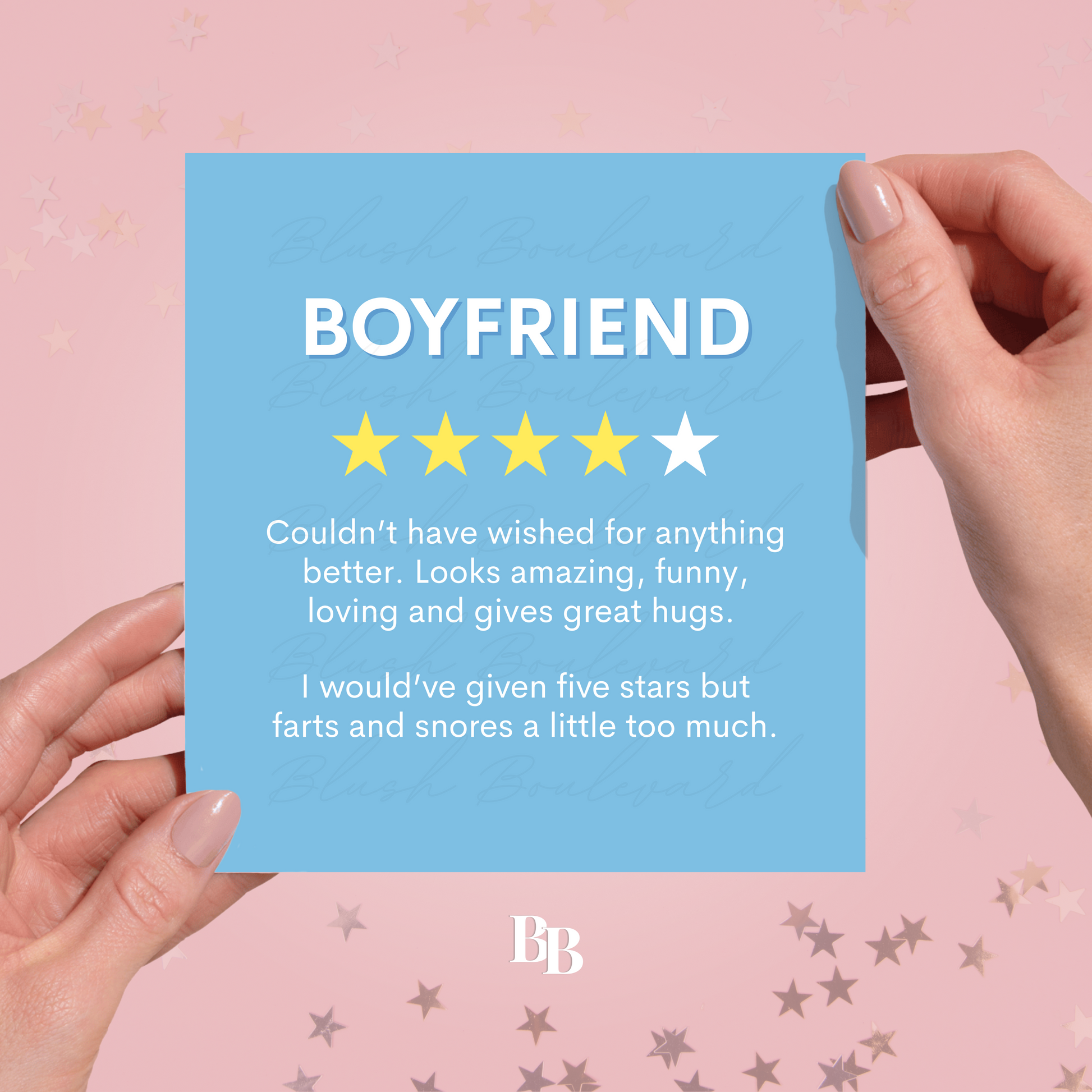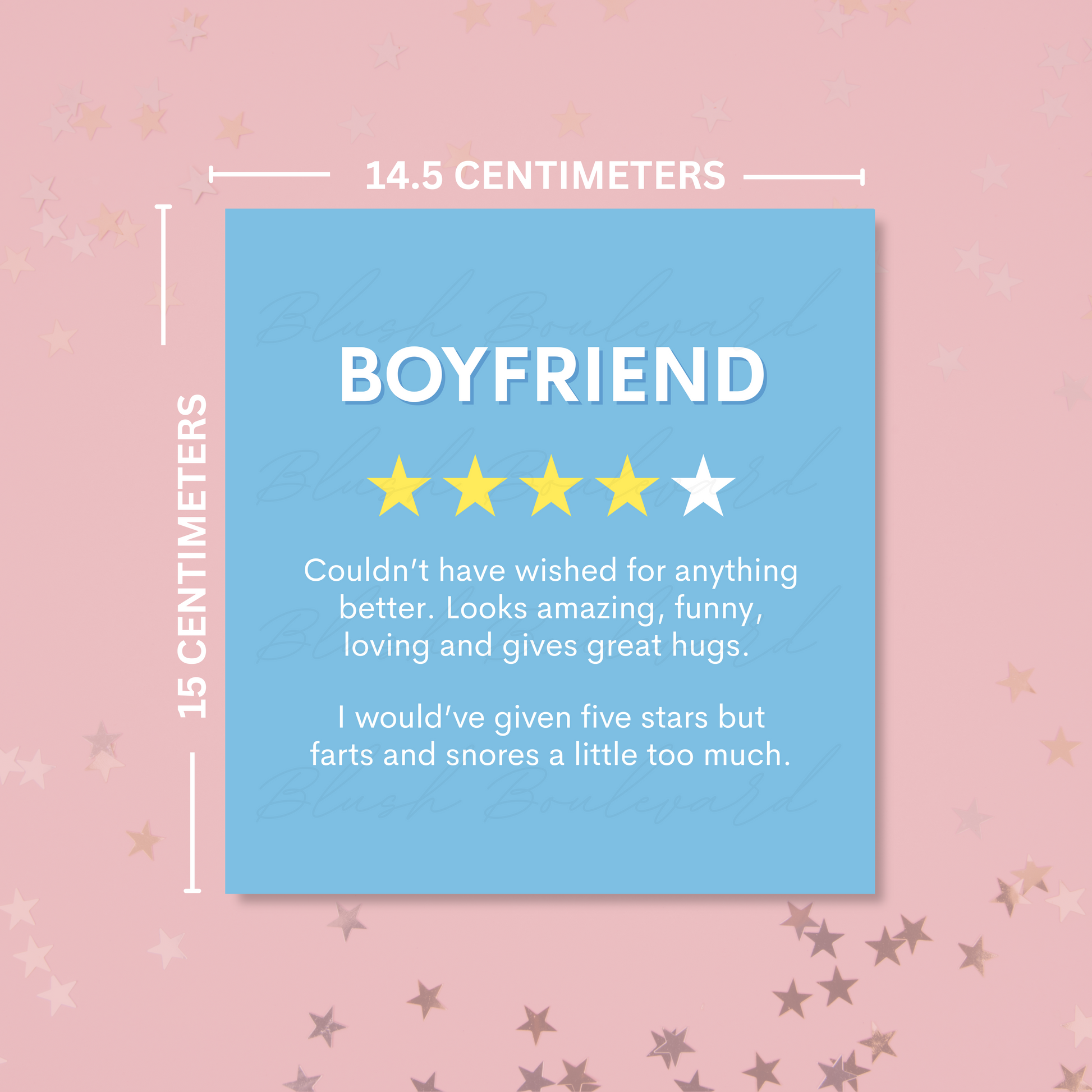 A funny star rating card for your boyfriend, romantic, cheeky and painfully accurate. Ideal for Valentine’s Day, birthdays or anniversaries.
