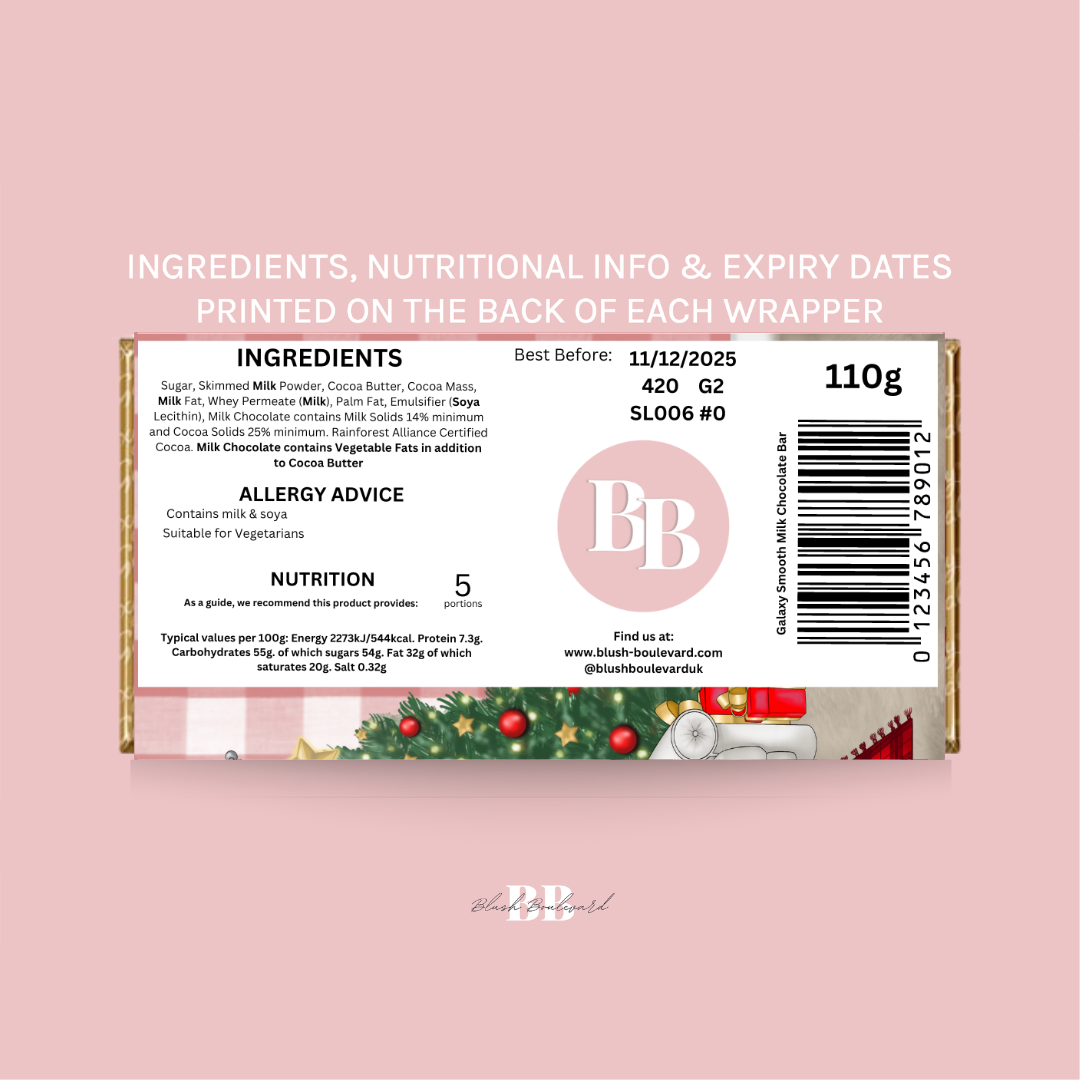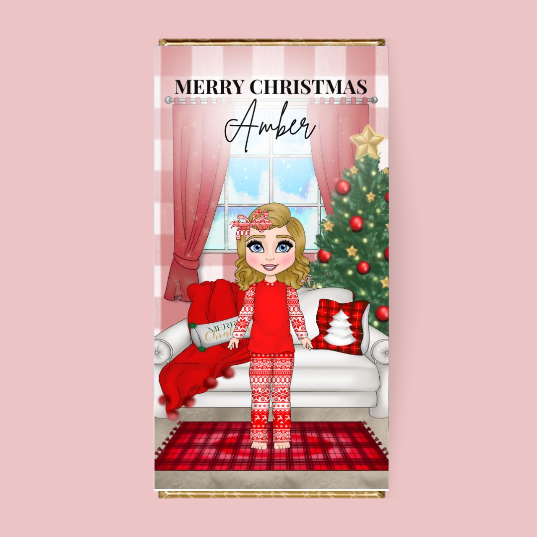 These little bundles of deliciousness are perfect as stocking fillers. Customise the character on the front to surprise a girl or boy with their very own chocolate bar. We've opted for a plain milk chocolate bar for this design so everyone can enjoy!